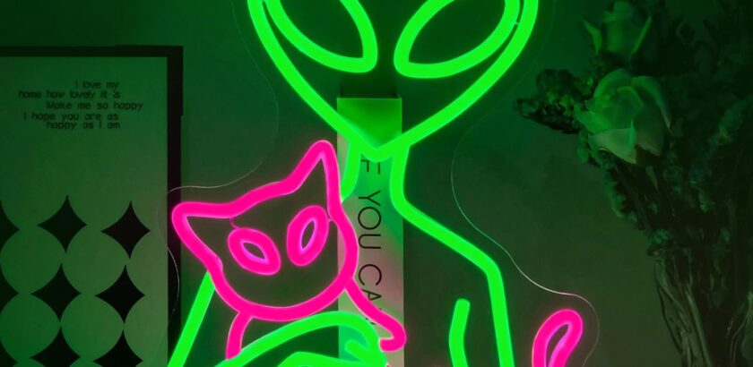 Our obsession with Aliens has led us to this sweet neon lamp. We love Aliens because they’re little, green, and cruise around in cute little spaceships. And now the truth is out – they love cats. You’ll want to check this out because…Aliens (and cats)! This is a…