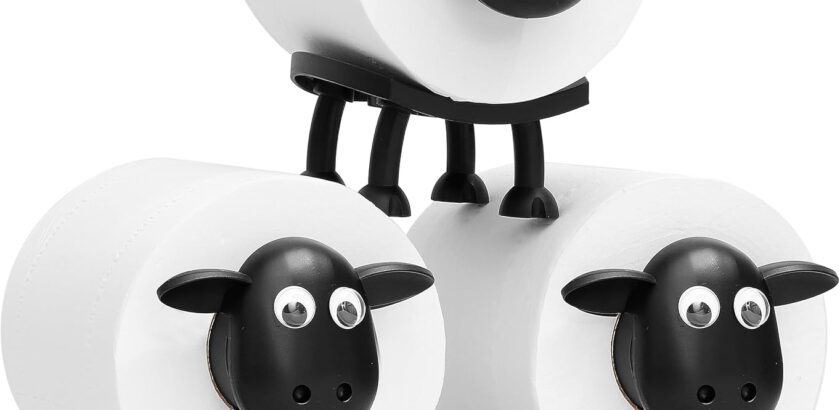 Keep that spare TP close at hand. The black sheep of your family can be cute & useful by being Keeper of the Toilet Paper, and will fit on shelves or the “loo lid”. Sturdy and charming – perfect for small bathrooms. Complete with Google Eyes!